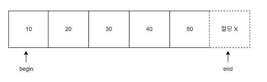 여기서 알아두어야할 점은 end 함수의 경우 컨테이너의 끝 인덱스가 아닌 끝 인덱스 + 1의 값입니다. (만약 end 함수가 50의 위치를 가리키고 있으면 != 연산으로는 모든 원소를 출력할 수 없게 됩니다.)