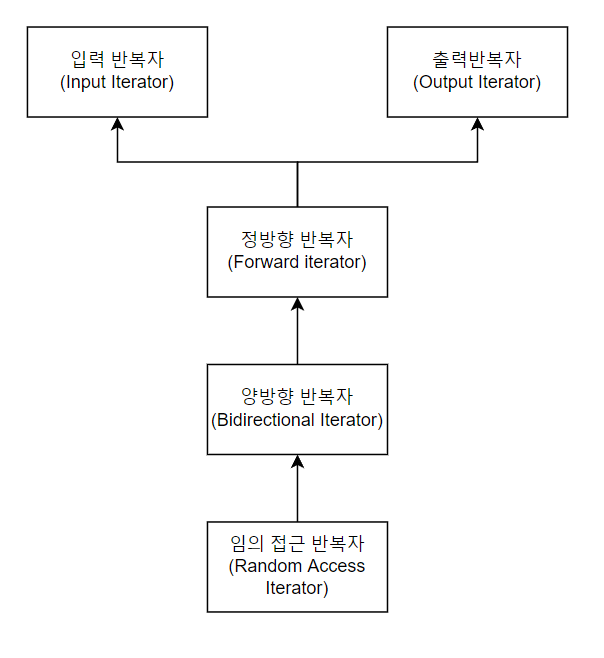 반복자는 다음과 같은 계층 구조를 가집니다.