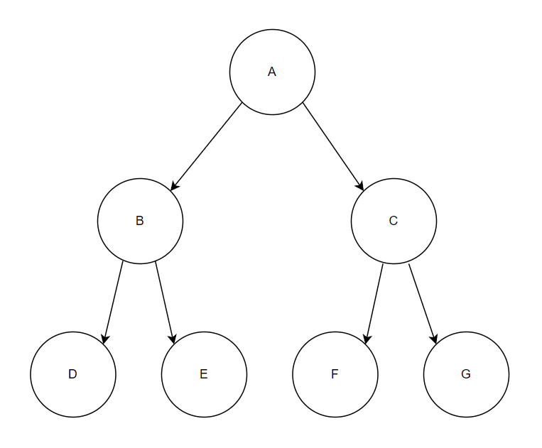 - 리프 노드(leaf node) : 노드의 차수가 0인 노드를 의미합니다. (맨 끝에 있는 노드를 의미) 위에서는 D, E, F, G 노드가 리프 노드입니다.