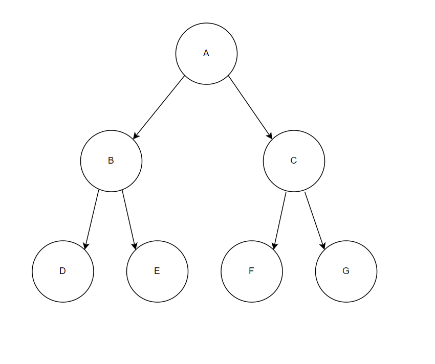 - 루트 노드(root node) : 부모가 없는 노드를 의미합니다. 트리는 하나의 루트노드만을 가집니다. 위에서는 A노드가 루트노드입니다.