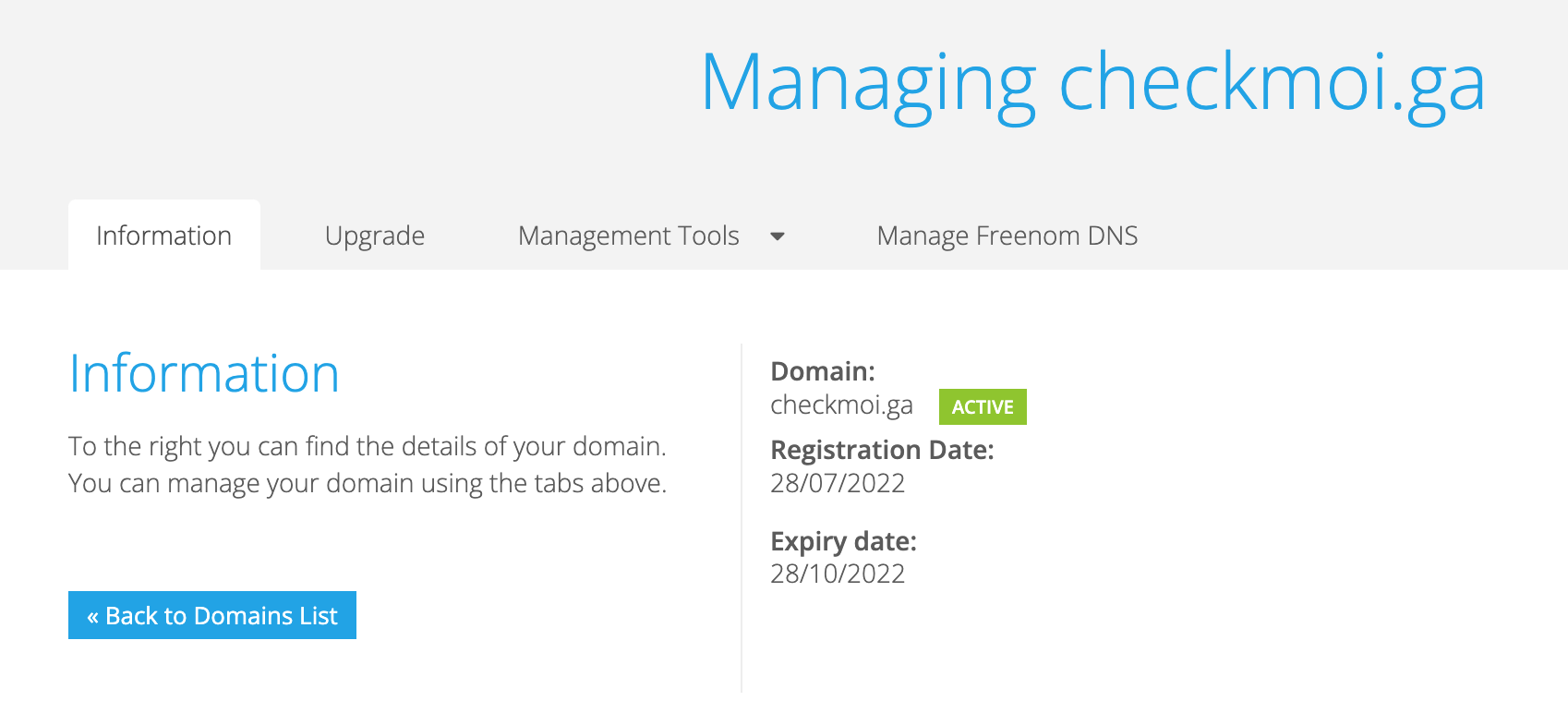 그 다음 원하는 도메인에 Manage Domain을 선택합니다.