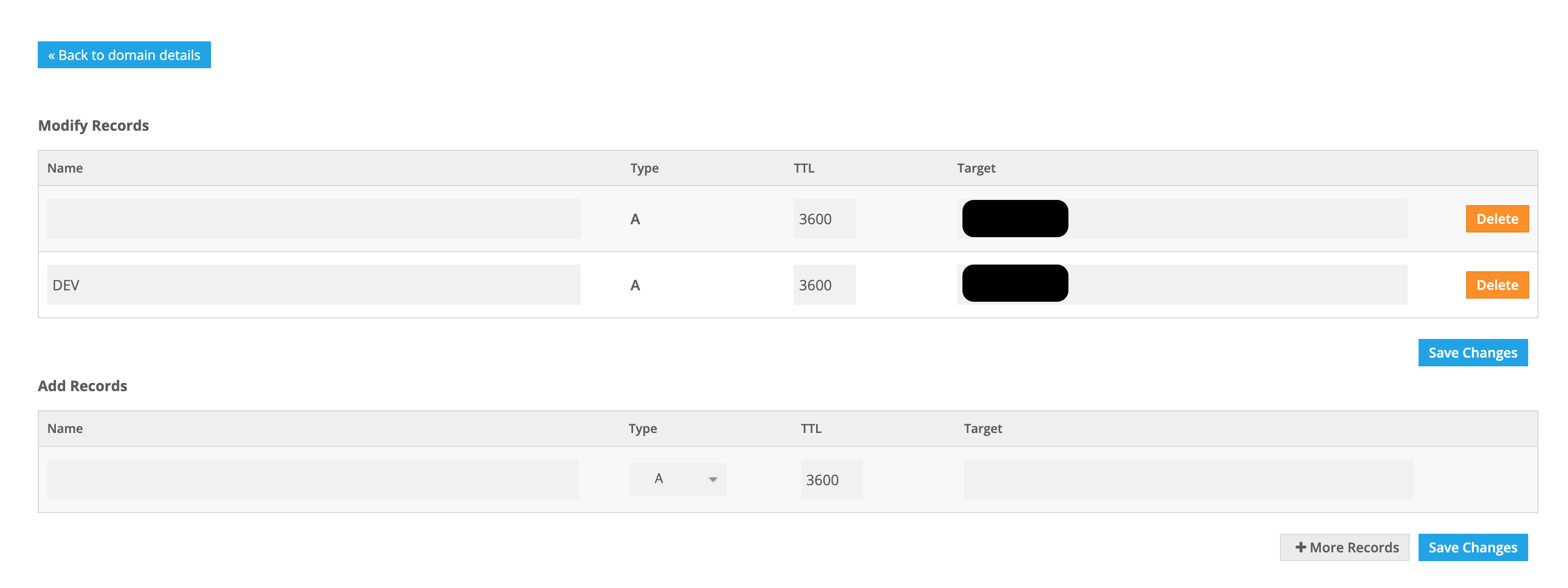 - Target : 레코드 타입으로 지정한 값이 들어갑니다. A를 사용하면 여기에 서버의 IP주소가 들어가게 됩니다.