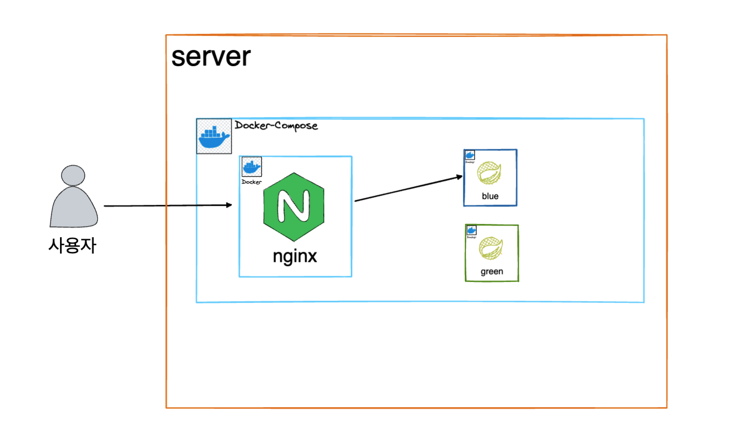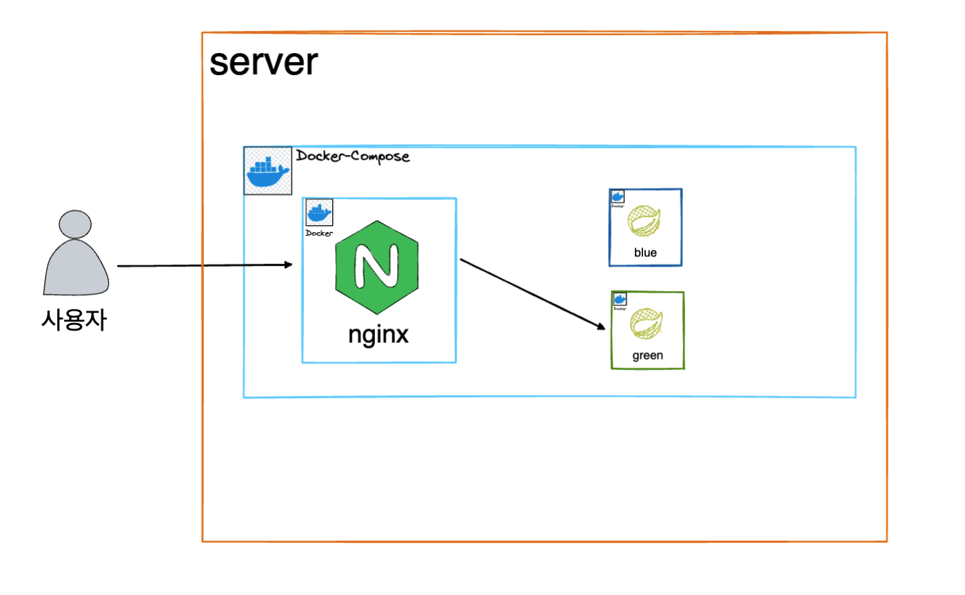 proxy_pass http://green:8080; # 이부분이 수정되는 부분