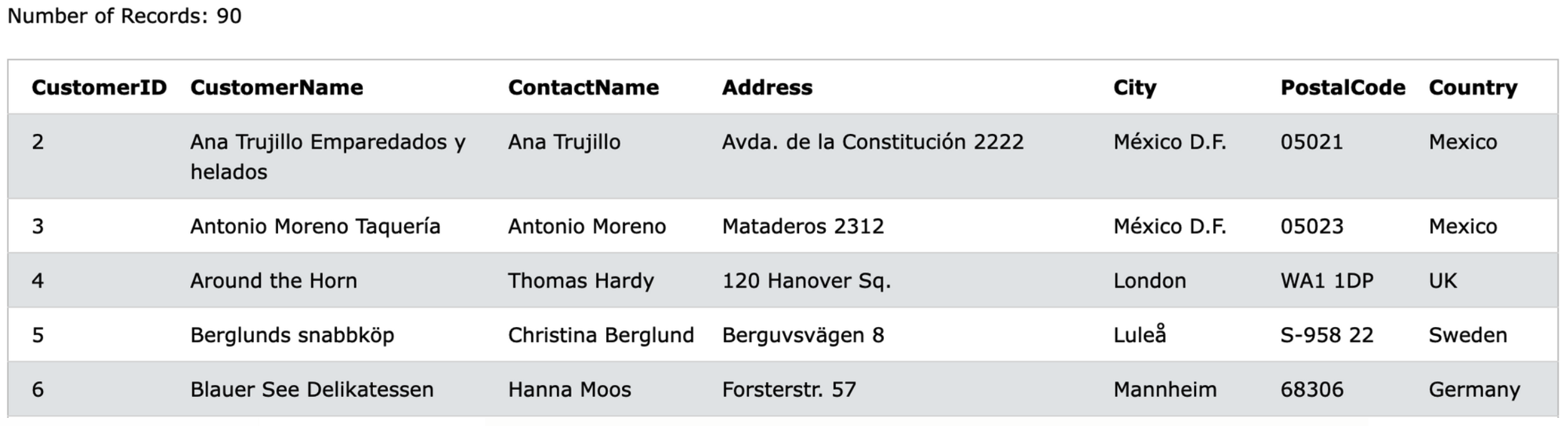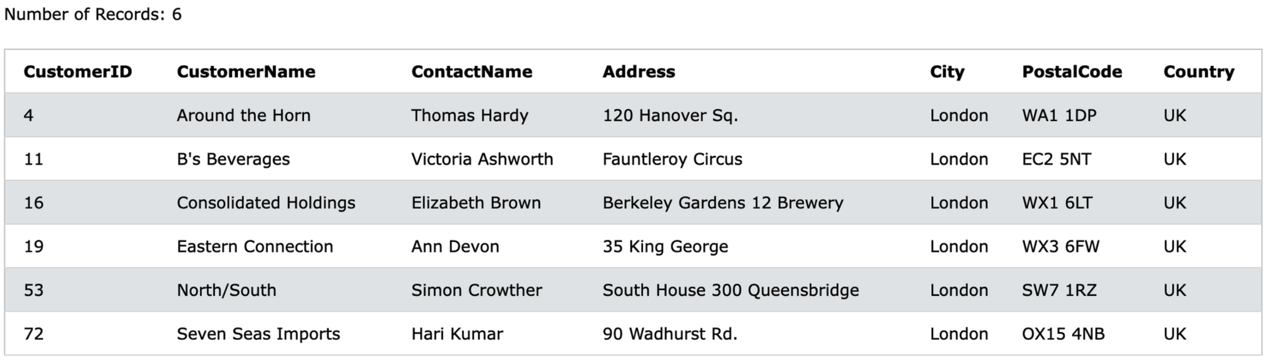 위의 조건식을 한글로 풀어서 설명하면 “CustomerId가 1인 행만 출력한다.”가 됩니다.