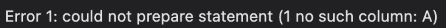 마찬가지로 존재하지 않는 열을 지정할 경우에도 에러가 발생합니다.