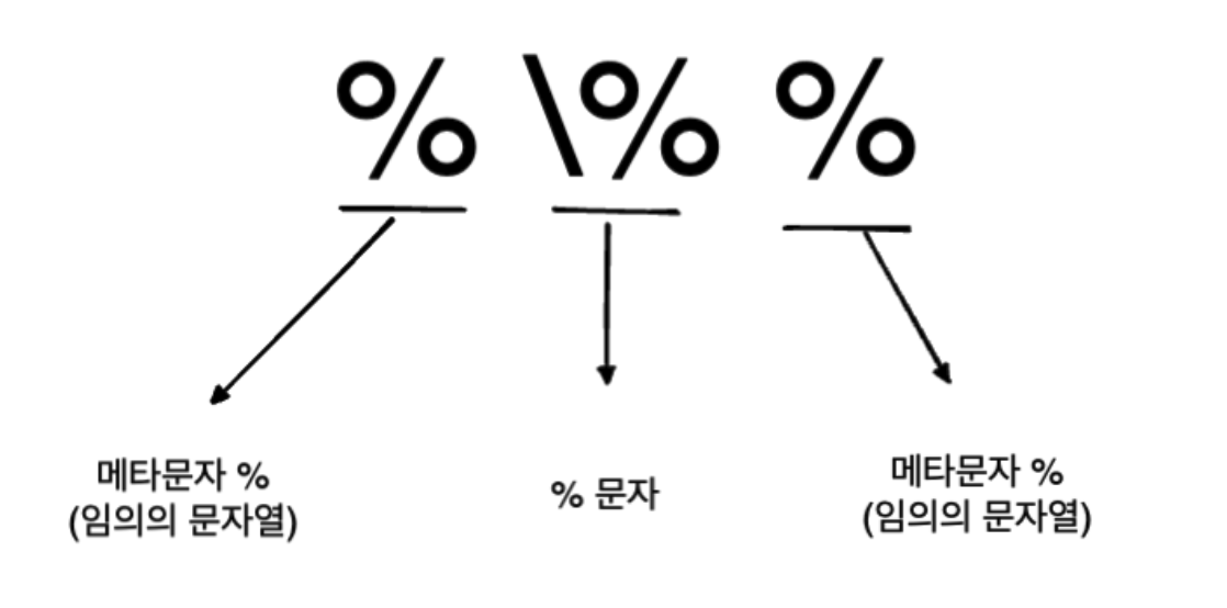 만약 데이터에 %나 _와 같은 메타문자가 존재한다면 어떻게할까요?