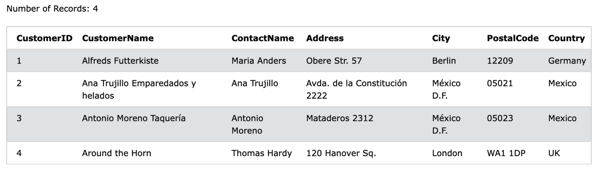위의 결과를 보면 A로 시작하는 CustomerName만 잘 가져온 것을 확인할 수 있습니다.
