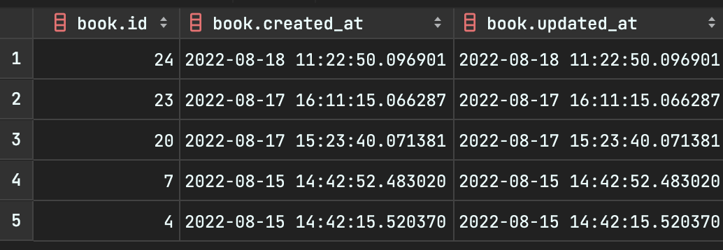 제가 예상한 동작은 ORDER BY를 통해 최신순으로 정렬하고 DISTINCT로 중복된 책 정보가 제거되는 상황을 생각했습니다.