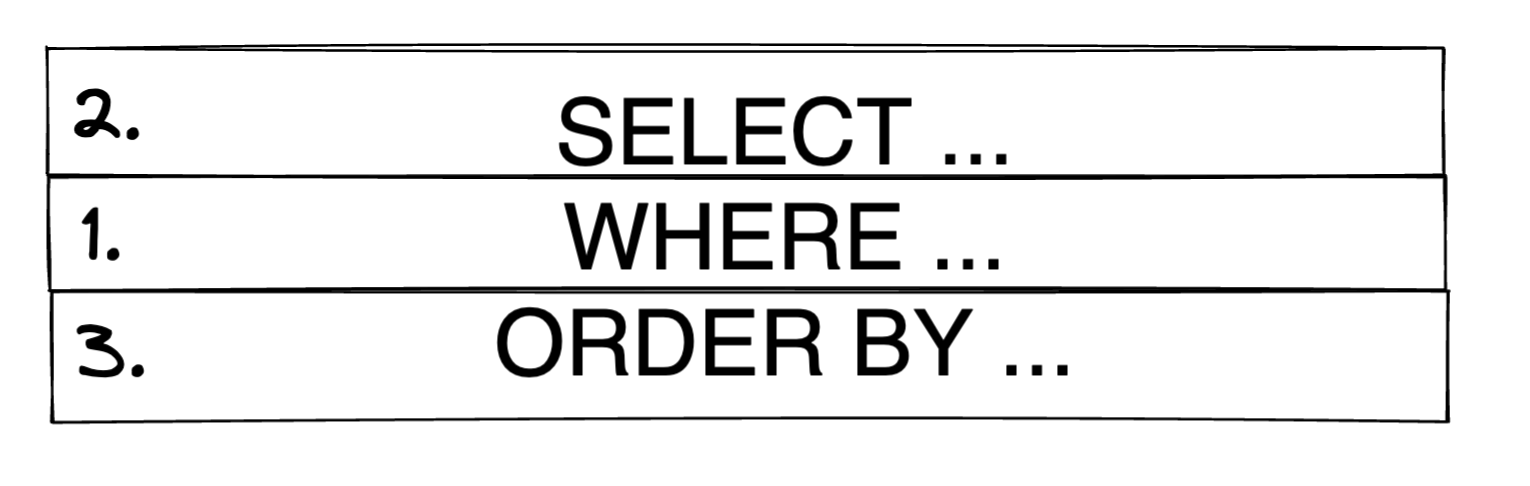 - SQL 쿼리는 WHERE -> SELECT -> ORDER BY 순으로 실행된다.
