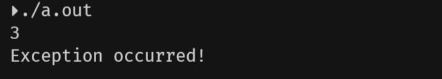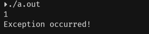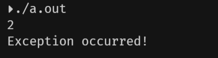 throw를 통해 catch에 서로 다른 자료형이 전달되더라도 abort가 발생하지 않고 Exception occurred!가 출력되는 것을 볼 수 있습니다.