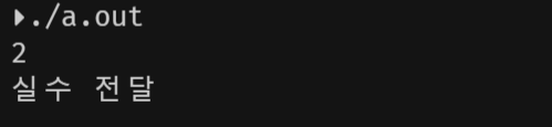 위의 코드를 실행시키고 1을 입력하면 정수 전달이 출력되고 2를 입력하면 실수 전달이 출력되는 것을 볼 수 있습니다.