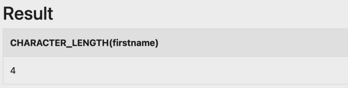 - CHARACTER_LENGTH 함수는 문자열의 길이를 반환해주는 함수입니다.