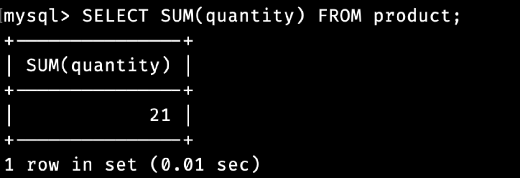 quantity의 전체 합인 21이 잘 출력되는 것을 볼 수 있습니다.