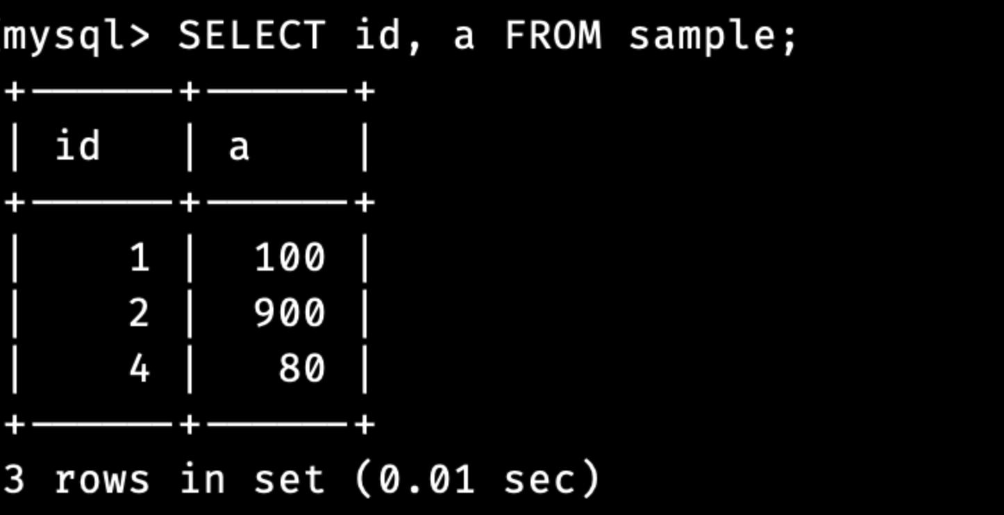 SELECT id, a FROM sample;