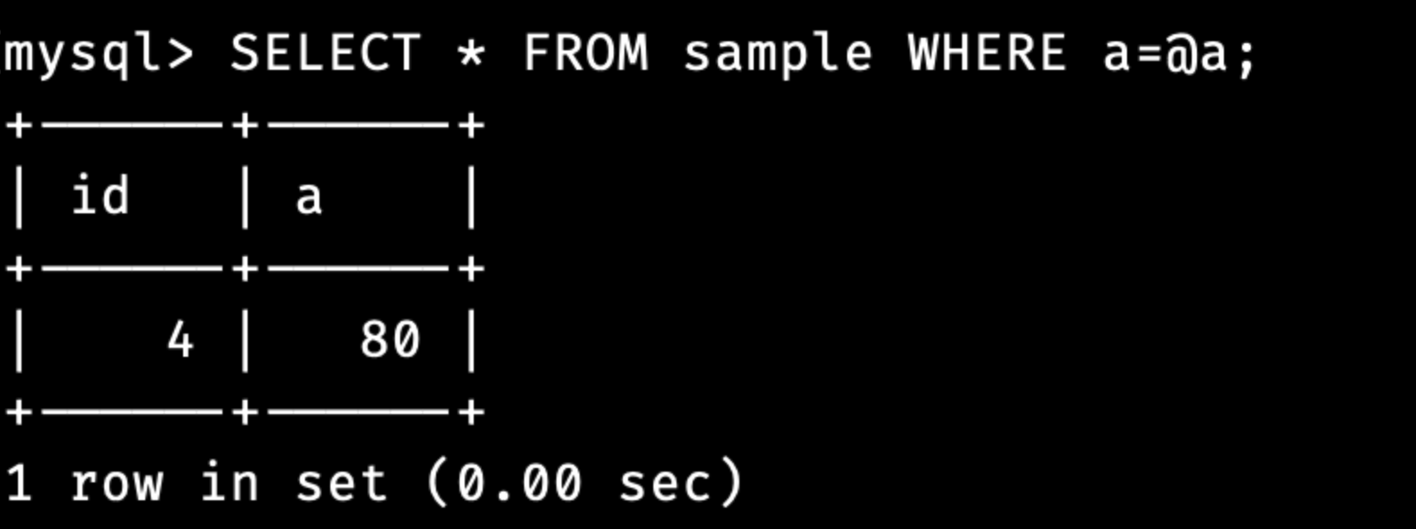SELECT * FROM sample WHERE a=@a;