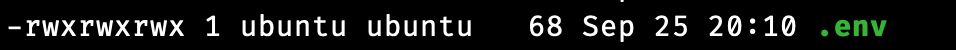 .env 파일에 접근하는데 권한이 부족하다는 메세지를 확인해서 처음에는 chmod 명령을 사용해 .env 파일에 모든 권한을 부여했습니다.