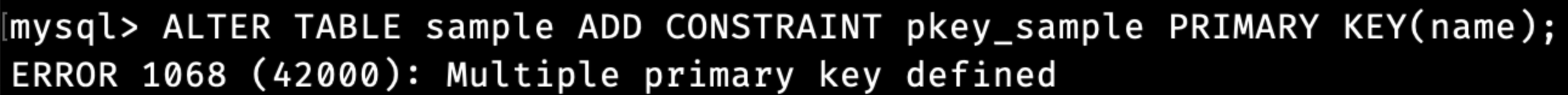 또, 열 제약을 추가할 때와 마찬가지로 기존의 행을 검사해 추가할 제약을 위반하는 데이터가 있으면 에러가 발생합니다.