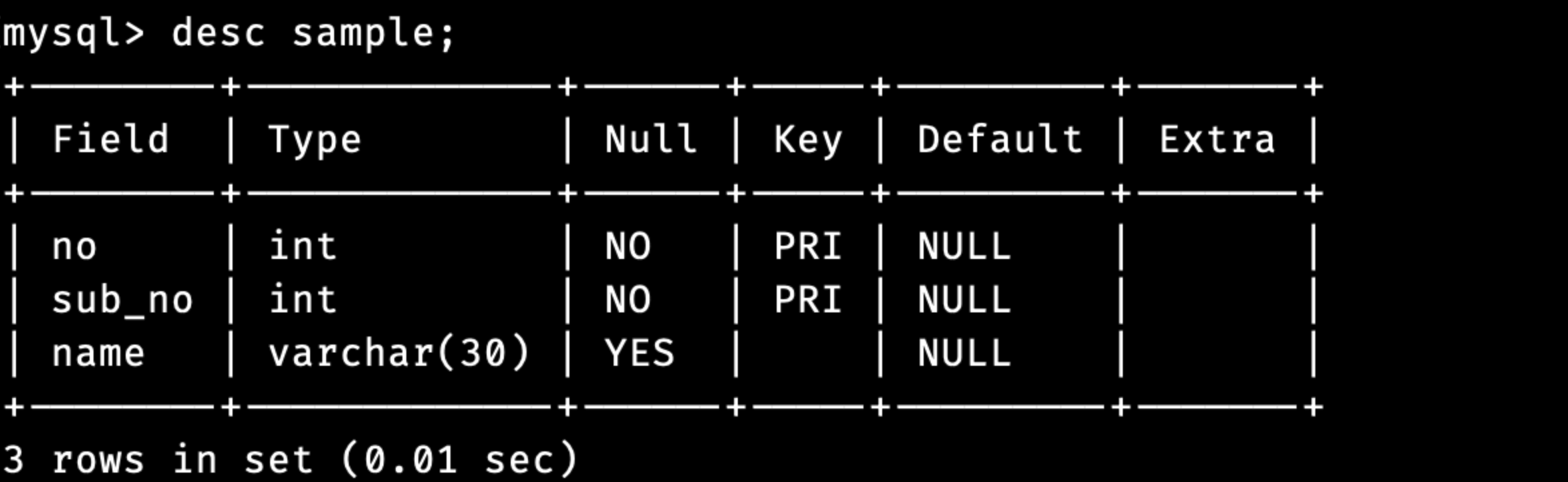 CONSTRAINT pkey_sample PRIMARY KEY (no, sub_no)