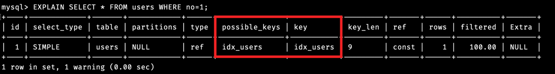 EXPLAIN SELECT * FROM users WHERE no=1;