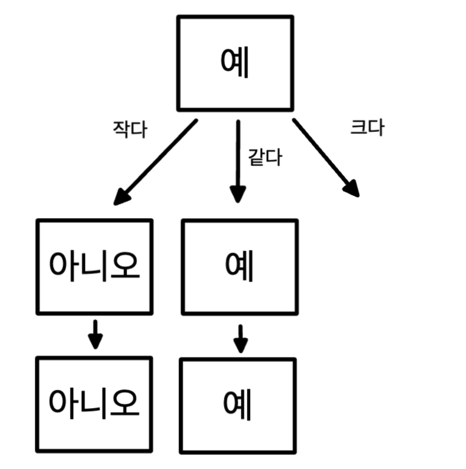 위와 같이 예, 아니오로만 되어 있다면 이진 탐색에 의한 효율적인 검색은 기대할 수 없습니다.