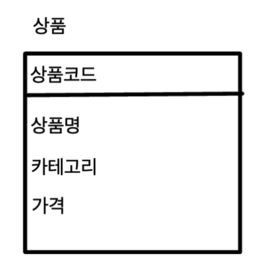 ER 다이어그램에서 개체는 사각형으로 표기하며 사각형 상단에는 이름을 적고 사각형 안에는 객체의 속성(열)을 표기합니다.