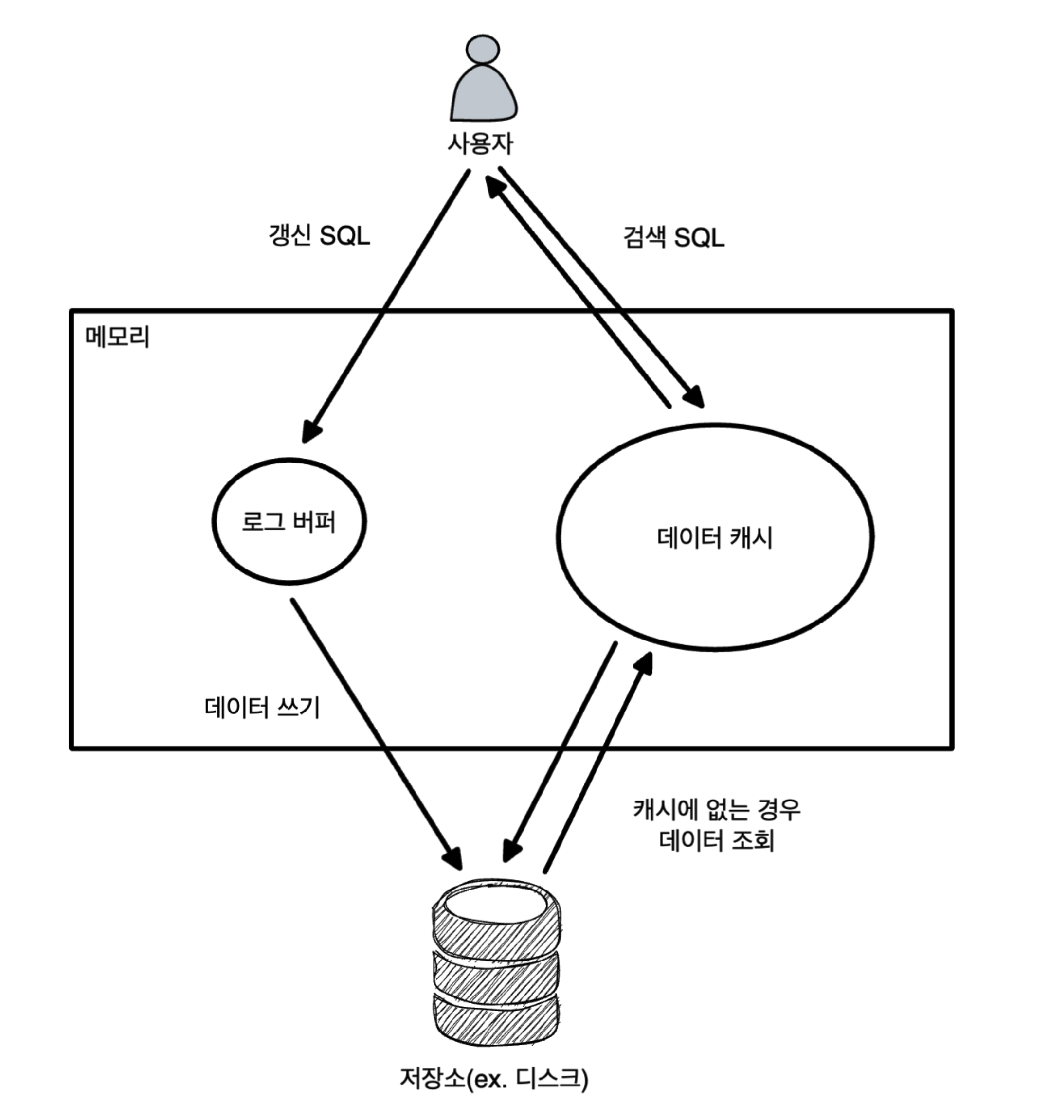 예를 들어, 자주 접근하는 데이터를 메모리 위에 올려두면 같은 SQL 구문을 실행한다고 해도 디스크에서 데이터를 가져올 필요 없이 곧바로 메모리에서 읽어 빠르게 데이터를 검색할 수 있습니다.